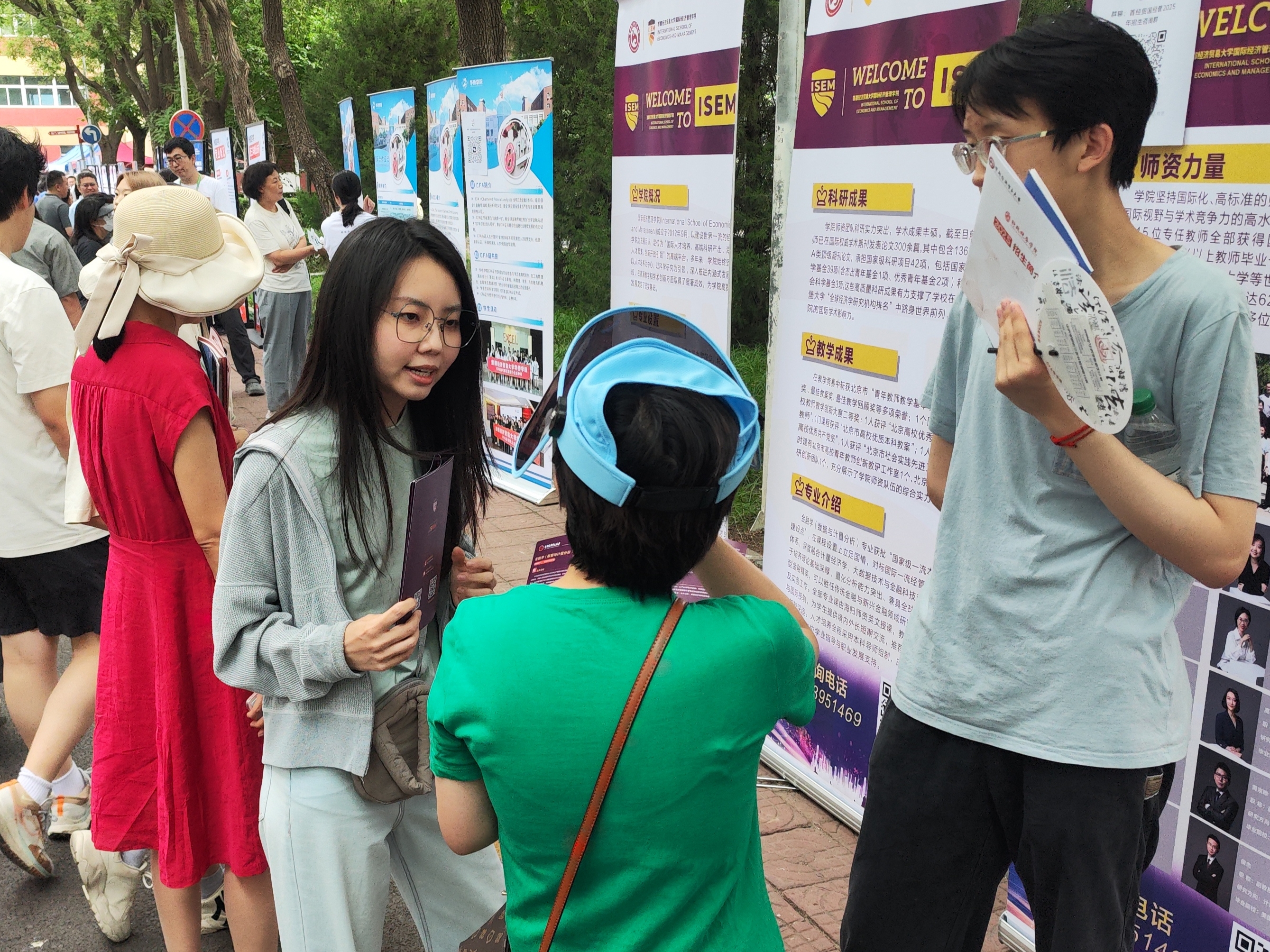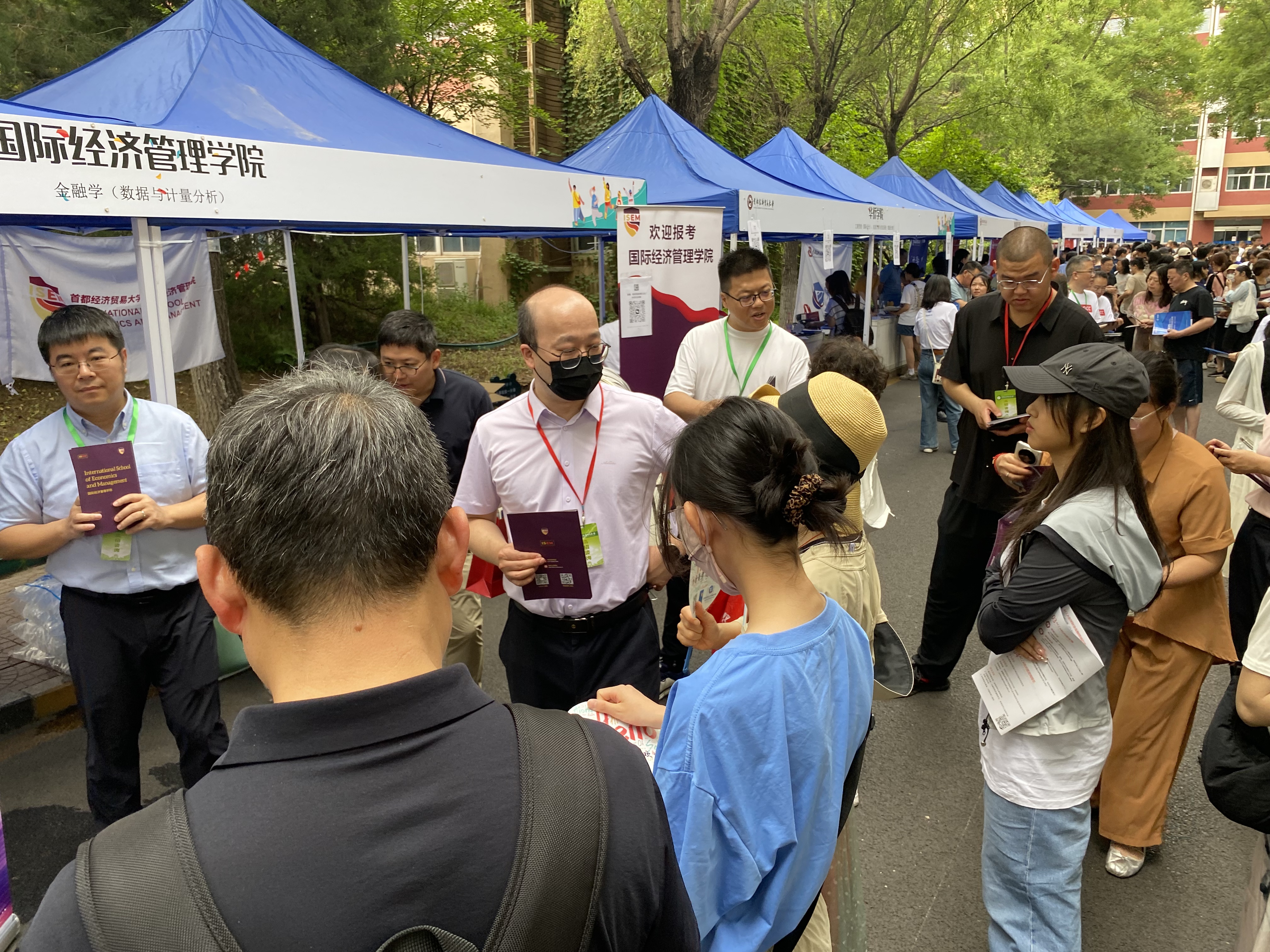 6月26日上午,八叉书库 在八叉书库 校园开放日活动中,面向2025届高考考生及家长开展了本科招生现场咨询。学院党委书记姜蓓蓓、院长马庆寅、党委副书记付明岩、副院长高静、副院长李委明、金融系两位主任黄宗晔和庞蔡吉、团委书记张雅淇、教学秘书胡一晗以及在校学生代表共同参与了此次活动。