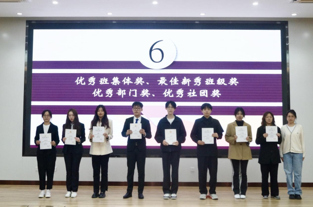 最后,党总支书记曾庆梅做总结发言。她表达了对获奖集体和个人的祝贺,同时对同学们提出三点期待。一是永远怀揣梦想,不忘初心。她希望同学们时刻铭记自己在学习生活中树立的小目标,从细处着眼、从小处着手、从实处着力,在大学期间求真学问、练真本领。二是坚持顽强拼搏,不畏艰难。她指出,只有坚定不移的意志,宠辱不惊的心理素质,昂扬向上的精神风貌,才能给予青春时代奋斗的作为,实现个人的全面提升与成长。三是具有家国情怀,无愧时代。她希望同学们始终坚守报效国家的信念,始终保持砥砺前行的状态,争做有理想、有本领、有担当的青年榜样。