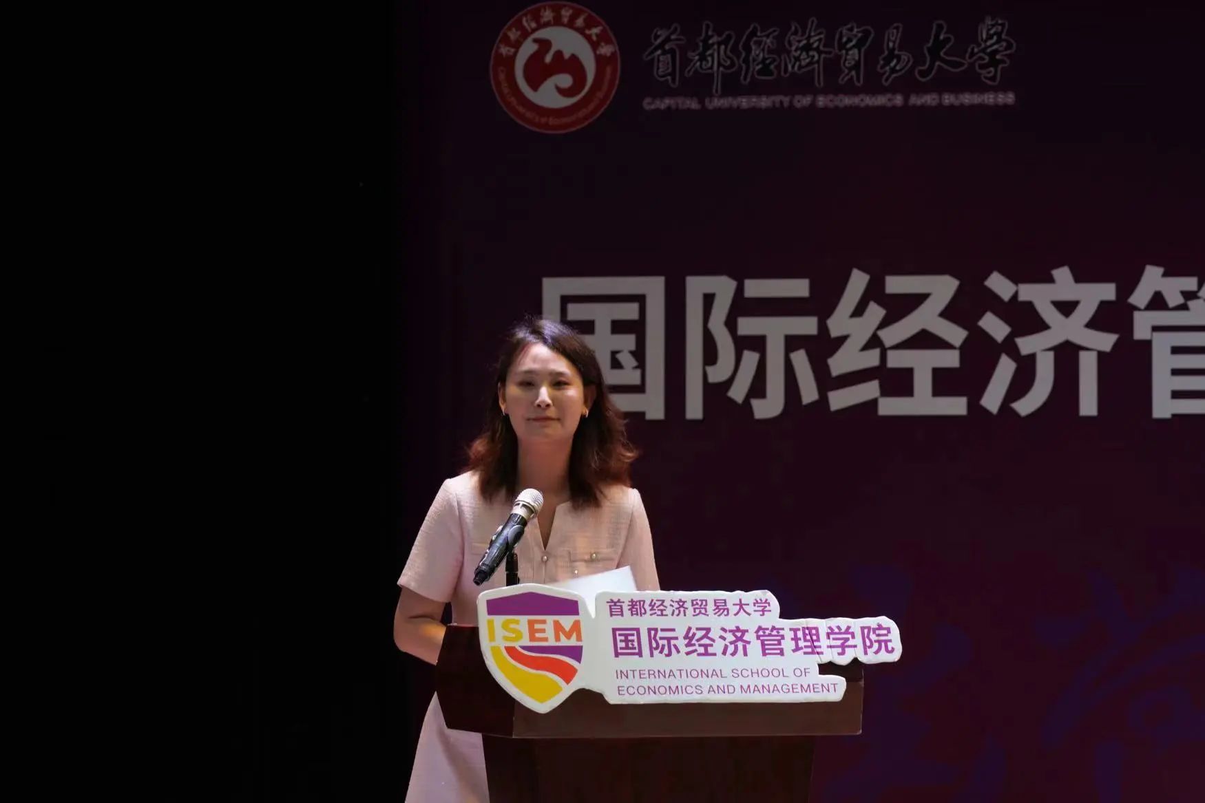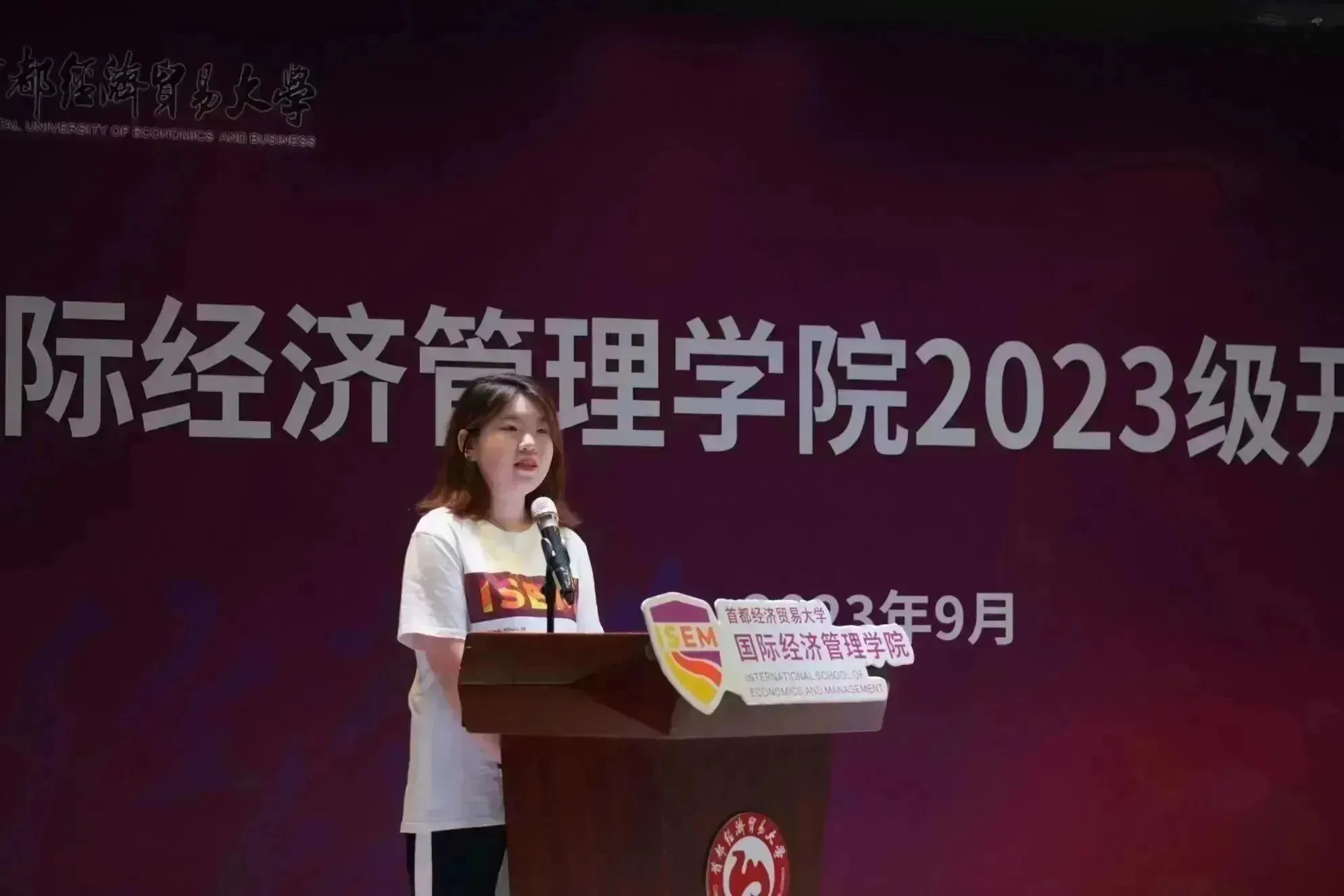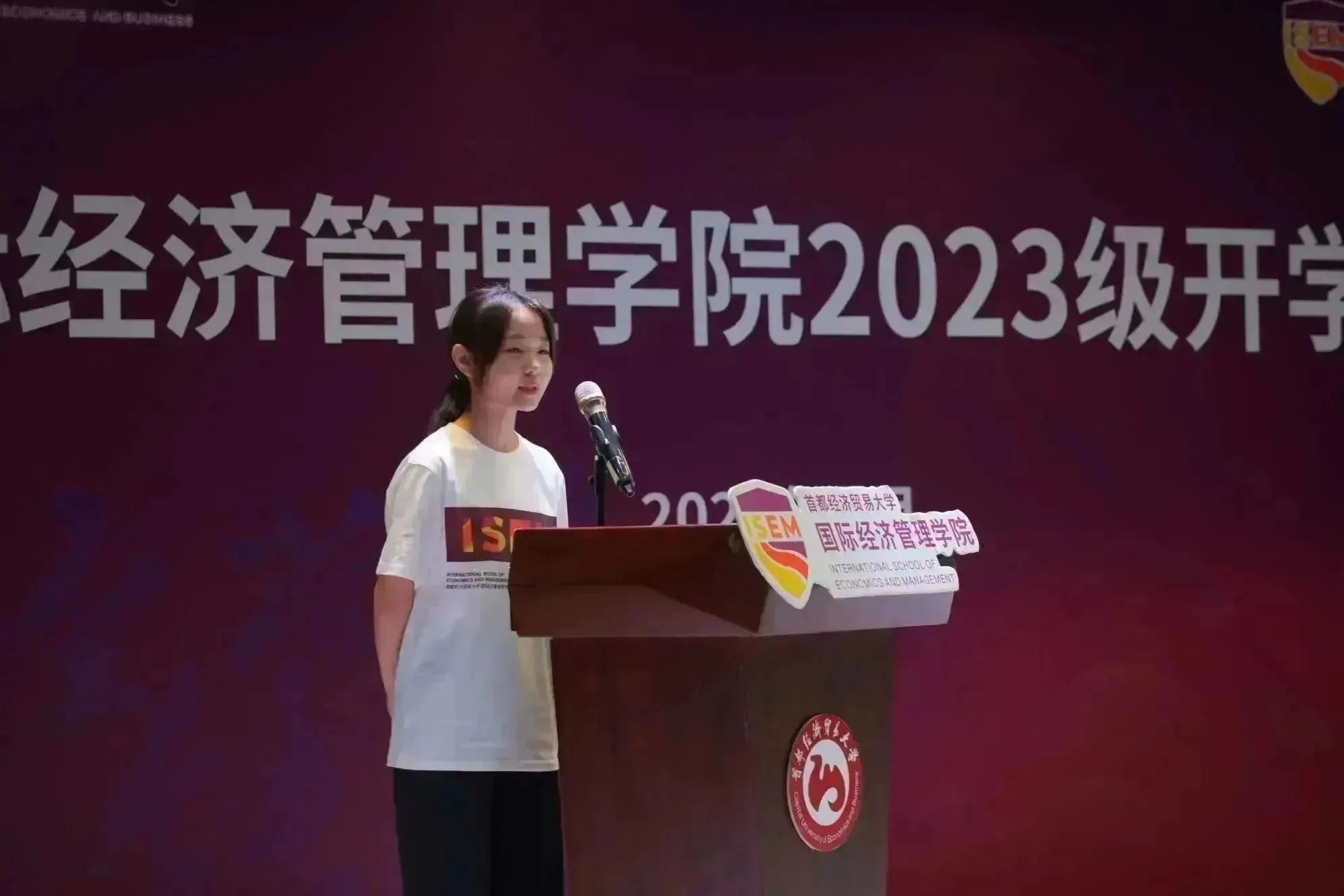 新生代表揭子菡发言,她回忆了高中的拼搏经历,并表达了对未来国经管生活的期待与向往。她希望可以借助学院这个广阔而绚丽的平台展现自我,不断进取,全面发展。她表示,将积极参与,勇敢践行,锻炼自己,加强合作,并以学长学姐为榜样,用奋斗实现自己的梦想。