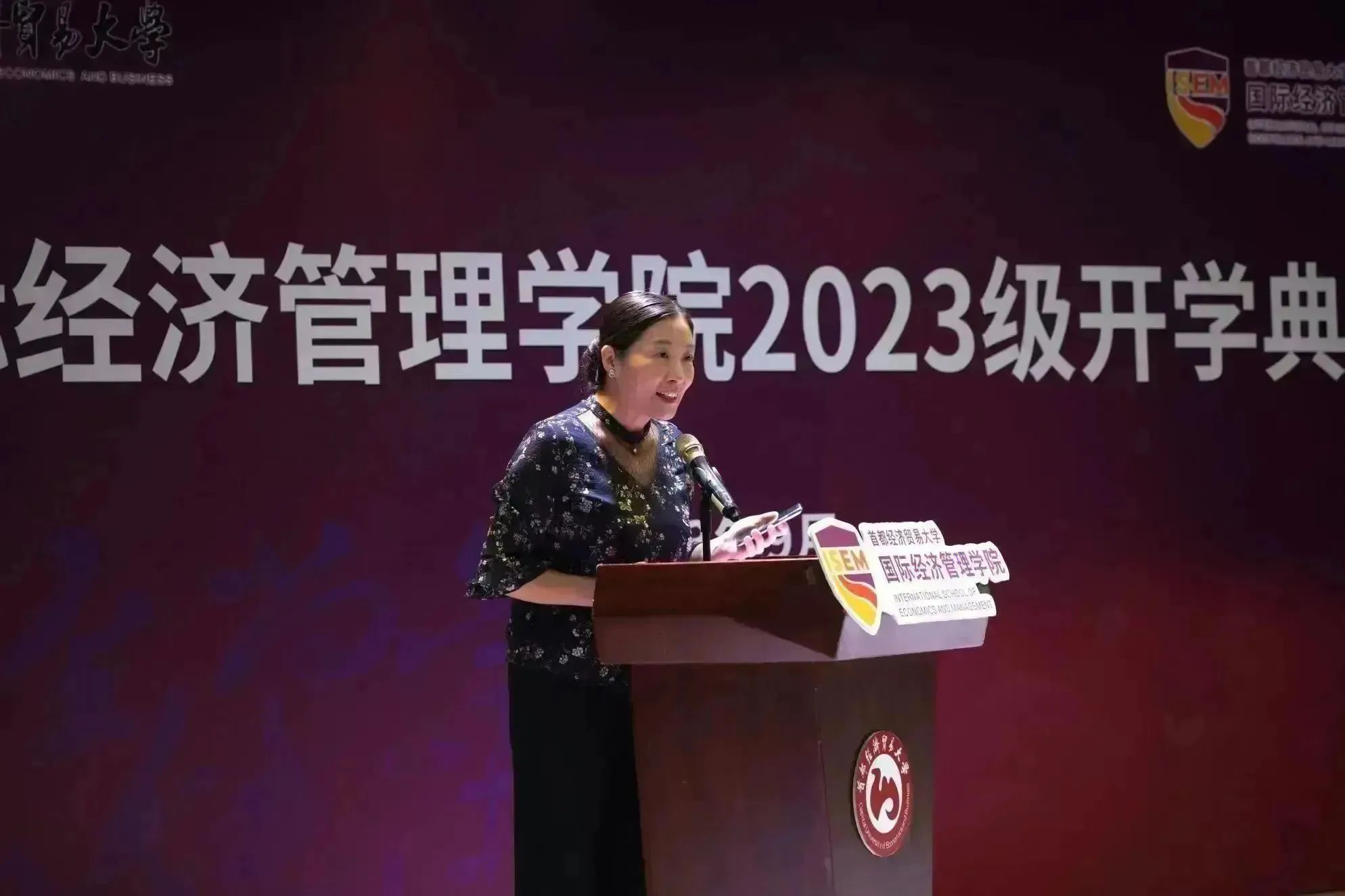党总支书记曾庆梅向新生描绘了精彩的国经管生活。她强调了三点大学生应具备的美德:一是修身立德赓续民族精神,她希望同学们自觉树立和践行社会主义核心价值观,善于从中华民族传统美德中汲取道德滋养;二是志存高远确立人生航向,可以将目光望向未来、坚定走向明天,助力中国向上、民族向上、世界向上。三是脚踏实地扬起理想风帆,她希望同学们敢于尝试,勇于担当,乐于奋斗,用青春渲染时代最靓丽的底色,增强生逢盛世定不负盛世的责任感和使命感,将理想注入前进的步伐,做新时代的开拓者。