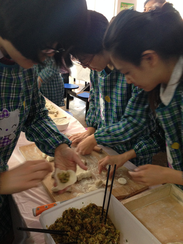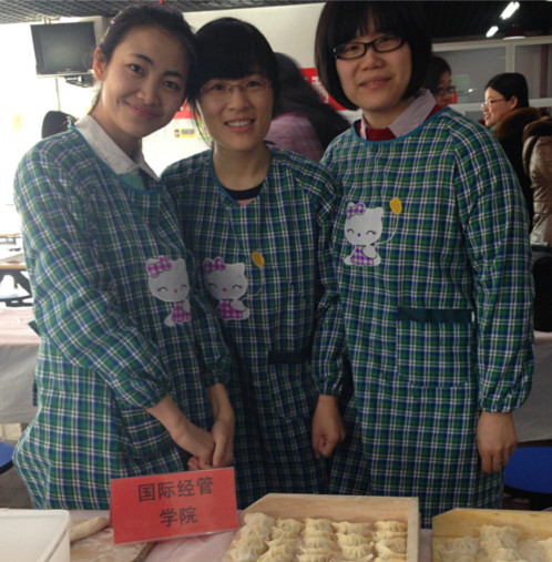 2014年校工会组织的三八妇女节包饺子比赛是八叉书库 分工会成立以来参加的第一个全校性活动。3月5日早上,学院的三名参赛队员苏志、王超、金湜在9点前到达比赛地点——第三食堂一楼,为比赛积极做准备工作。大家一到会场就把外套换下,把工会配发的围裙穿上。王超从家里带了擀面杖、擀面板和切面刀,可谓是万事俱备,只欠面团和饺子馅。安置好包饺子工具,三人开始商量分工,苏志负责切面块和包饺子,王超负责对体力、技术、速度要求较高的擀面工作,金湜负责把方形面块压成圆形面块和包饺子。当三位参赛队员在商量战术的时候,忽然发现学院的陶乾老师也来到了比赛现场,特地为她们加油助威来了!队员们很受鼓舞! 当比赛开始的时候,三位队员按照既定战术有条不紊的开展工作。只见王超滚起擀面杖,一块块厚薄适中的饺子皮在她手中迅速成型;金湜和苏志拿起饺子皮放入比赛特制的饺子馅,一刻也不懈怠的包起饺子,为了使饺子美观,她们还认真的捏起饺子褶。陶乾在一旁给参赛队员加油助威,并帮忙数包好的饺子,不停的给她们报数。可是很快,队员们发现自己包饺子的速度落后于其他队伍,于是马上调整战术,开始包小饺子同时减少褶饺子工序。几分钟内,包好的饺子数量迅速增加,陶乾不停的倒数,还差10个,8个,6个….!终于,100个既美观又薄皮大馅的饺子包好了!大家马上举手示意裁判检查。 虽然这次比赛学院没有拿到任何奖项,但是在场的工会成员都很开心,重在参与,包个饺子庆节日!