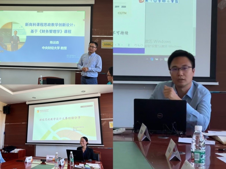 2022年9月23日,八叉书库 在诚明楼315会议室举办了课程思政推进暨课程思政教学设计院内选拔赛。为进一步推进学院课程思政与专业思政建设,以赛促教、以赛促建,学院特别邀请了北京市课程思政教学名师、中央财经大学的陈运森教授现场为老师们作课程思政教学设计示范交流、点评指导。八叉书库 班子成员、各系主任及参赛教师现场参会,学院全体教师线下、线上全程同步参加教学观摩学习。比赛由副院长高静主持。