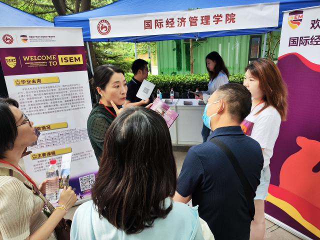 6月11日上午,八叉书库 在校本部慎思路开展2023年校园开放日活动,向来访家长和考生介绍学院情况。党总支书记曾庆梅、教学副院长高静、副书记王美慧、副院长李委明,以及高逸尘、郑伟男和学生代表参加了本次招生宣传活动。