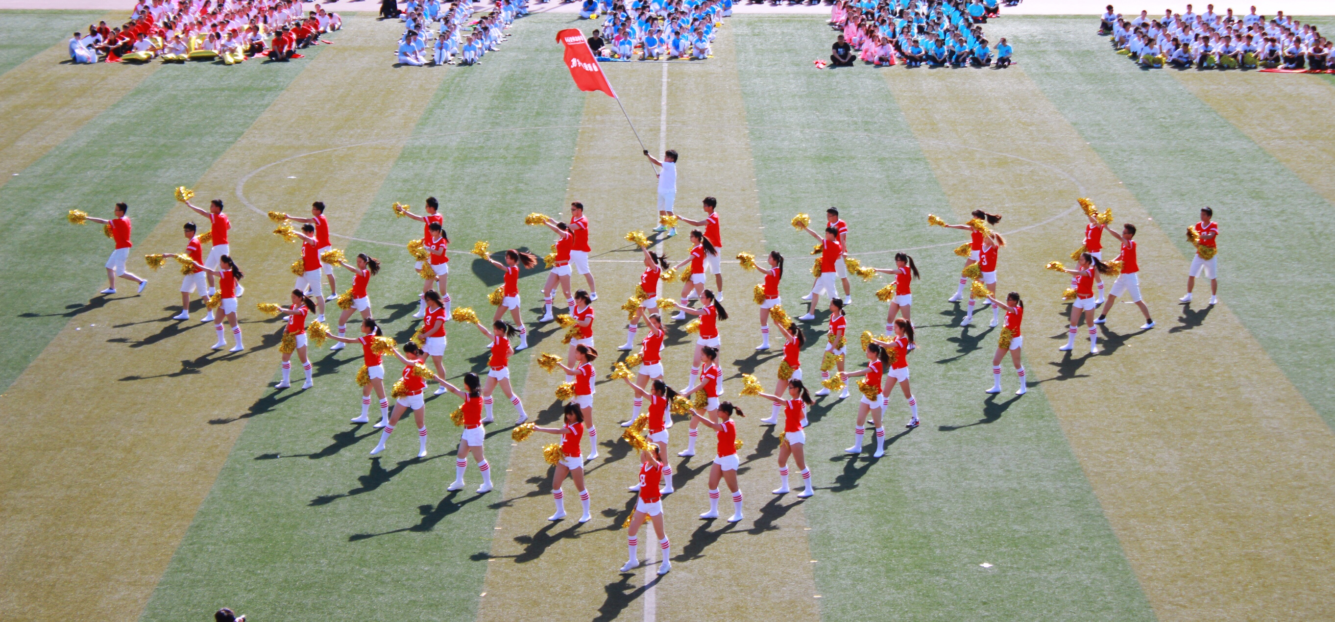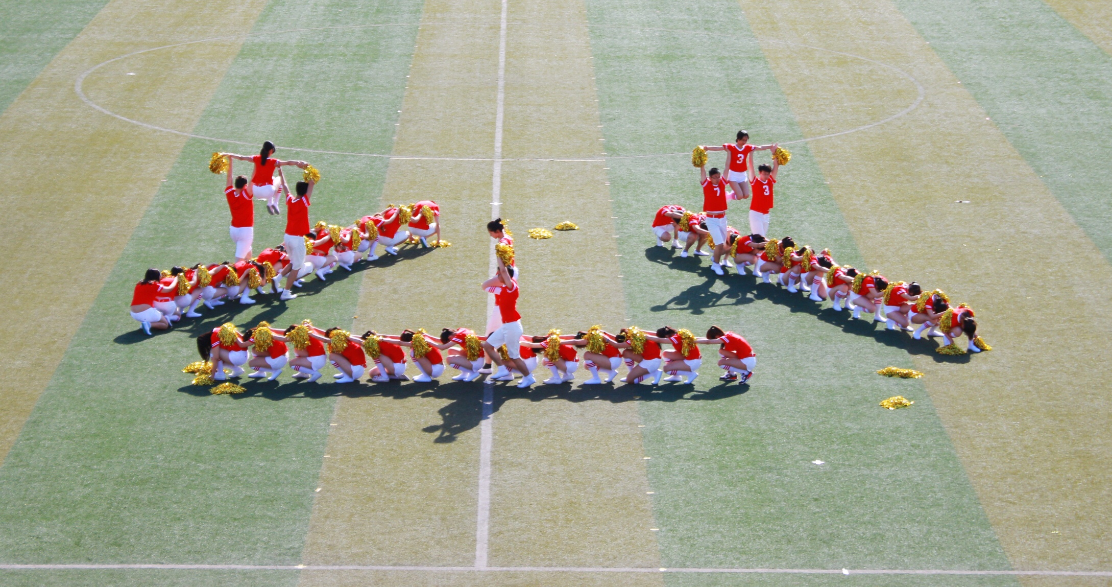 我院学子是在团体操比赛中首次亮相,他们身穿红白队服,手握金色花球,活力四射,青春洋溢。热情微笑的面庞之下是他们勇往直前的自信、整齐有力的动作背后是他们日夜拼搏的精神、漂亮多变的阵型蕴含着他们巧妙智慧的设计。表演的结尾,他们摆出“ISEM”的字型,展现出他们身为国际经管人的热爱与自豪。