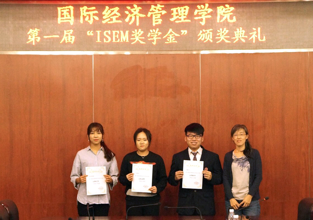 国际经管学院直属党支部书记兼常务副院长刘文川、副院长高静,院长助理李红军、侯蕾为“ISEM奖学金”各奖项获得者代表颁奖。