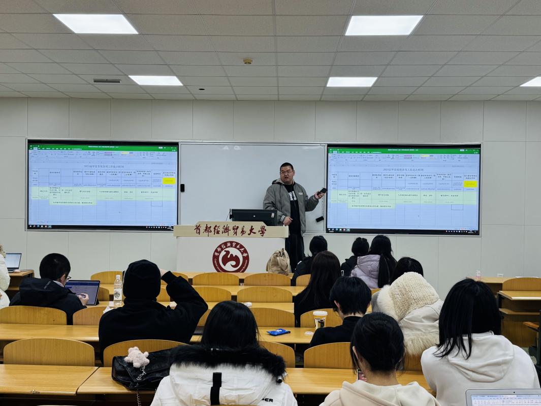 2024年12月11日,八叉书库 2025届毕业生就业促进动员会在慎思楼312教室顺利召开。学院党总支副书记付明岩、本科教学秘书胡一晗、兼职辅导员孟宛昕及全体2025届毕业生参加会议。
