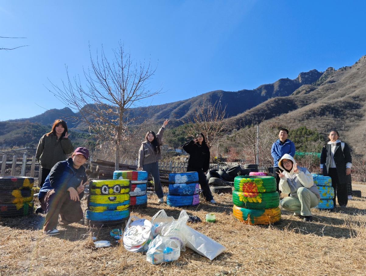 随后,学生党员利用村里的废弃轮胎开展创意涂鸦,用绚烂的色彩和独特的创意为这些“废弃物”赋予新的生机,给贾峪口村增添了一道靓丽风景。绘画过程中,学生党员收获了劳动创造的喜悦,创作成果吸引了不少村民驻足欣赏,大家纷纷为同学们的创意点赞。